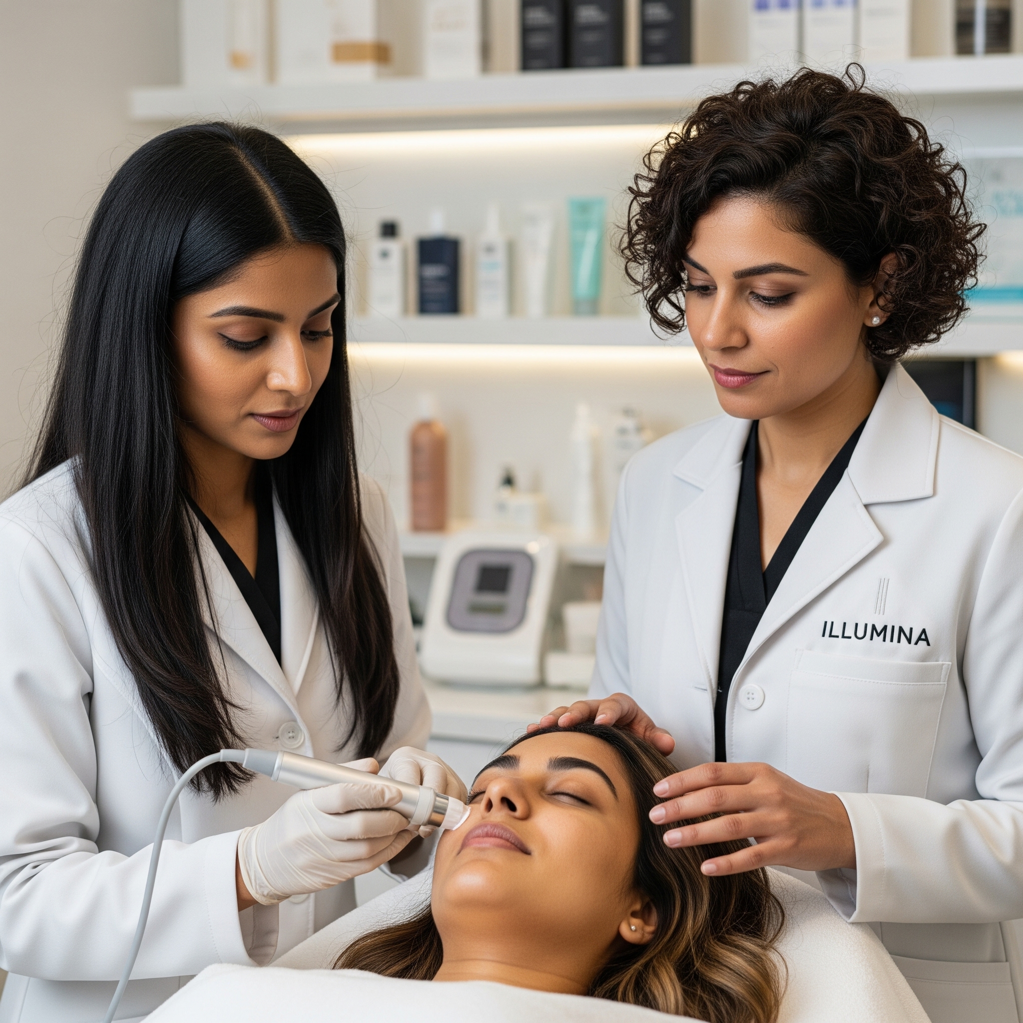 Advanced pigmentation management using a combination of topical agents, peels, and laser treatments.